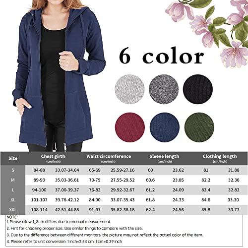 Tuopuda Donna Felpe con Cappuccio Giacca Elegante Scollo a V Top Manica Lunga Cardigan Felpe con Zip 2 Tasche Autunno Invernali Sweatshirt Cappotto Eleganti Pullover Hoodie Jumper, Blu, M