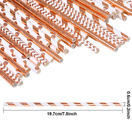 Quantità: ogni confezione contiene 200 pezzi di paglie di carta oro rosa di alta qualità, sono in 4 stili diversi, 50 per stile;