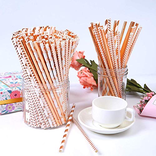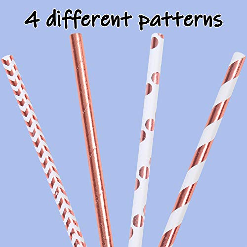 Quantità: ogni confezione contiene 100 pezzi di paglie di carta oro rosa di alta qualità con 4 stili diversi, 25 per stile;