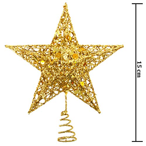Tupa - Puntale per albero di Natale in metallo glitterato, a forma di stella, cavo, decorazione natalizia per la casa