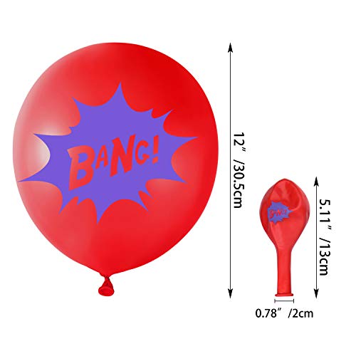 A tema supereroi: 36 palloncini in lattice in 6 colori, 6 slogan di fumetti di supereroi