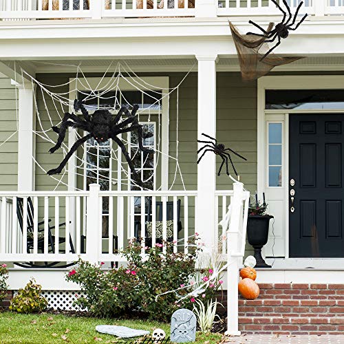 TUPARKA 4Pcs Decorazioni Ragno di Halloween Set, 3 Pezzi giganti Ragni di Halloween Pelosi con Enorme Rotonda 11ft Halloween Spider Web per Halloween Decorazioni per Feste Forniture