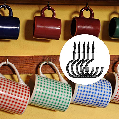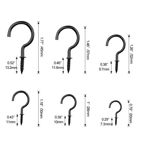 TUPARKA 75Pcs Ganci in metallo nichelato multi-formato Ganci a soffitto a vite Gancio per tazza, nero