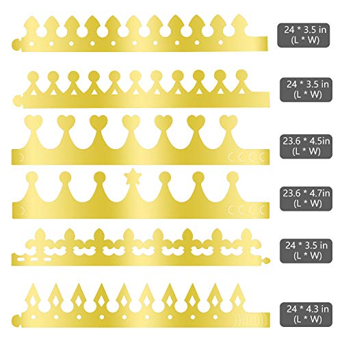 TUPARKA 24 Pezzi Corona di Carta Corona d'oro re corone Foglia d'oro Corona Cappello Cappello per Festa di Compleanno Baby Shower Foto Puntelli (6 Stili)