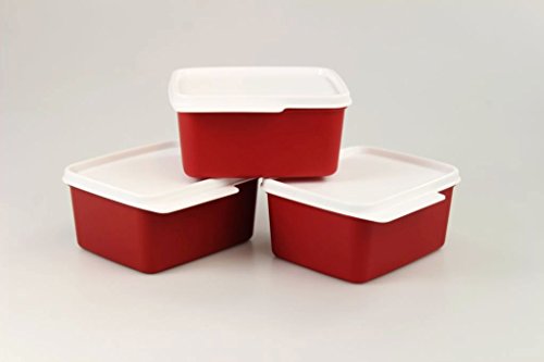 Tupperware, contenitore per frigorifero 15514, da 500 ml, colore rosso, con spigolo salvafreschezza, 3 pz.