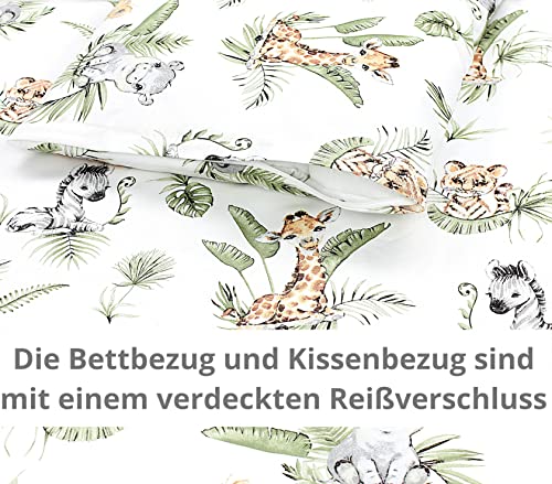 TupTam Biancheria da letto per bambini Ragazzi Ragazze Set 2 pezzi 100 x 135 cm + 40 x 60 cm, Safari/Leone/Marrone/Foglie/Verde, 120x90 cm