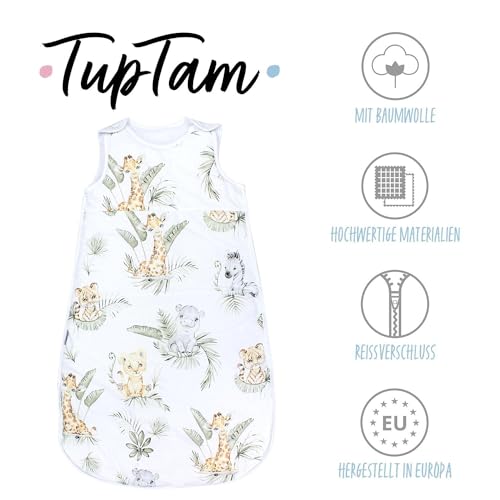 TupTam Sacco Nanna Neonati Tutto l'anno per Bambini Senza Maniche Cerniera Laterale, Safari/Leone/Marrone/Foglie/Verde, 56-62