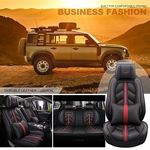 Tuqiang Coprisedili per auto Aygo Luxury 5 posti in pelle confortevole per tutte le stagioni, set completo, nero con linea rossa