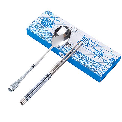 Turbobm Bacchette, Portatile Creativo in Acciaio Inossidabile Coreano Bacchette Cucchiaio Personalizzato incisioni Modelli bastoni Regalo del Fumetto