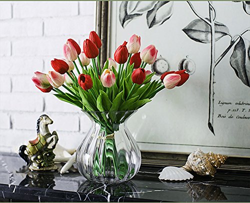 Turelifes - tulipani artificiali a stelo singolo, sembrano veri al tatto, in poliuretano, bouquet di tulipani per la decorazione della casa, 10 pezzi Red