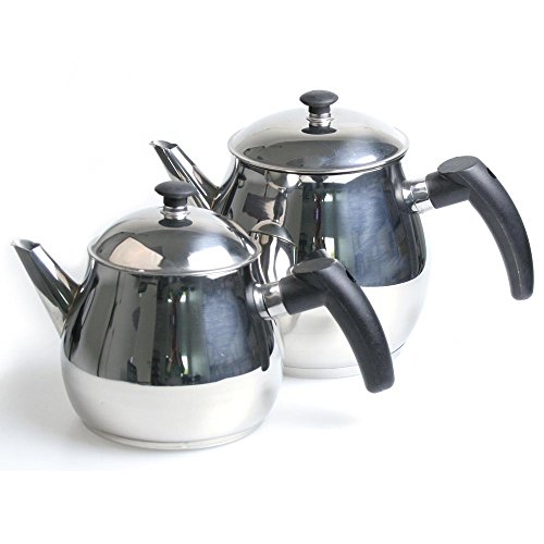 Turkish Caydanlik Tea Kettle with Cagla Teapot Tea and Black Handle