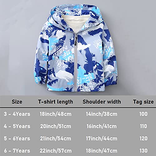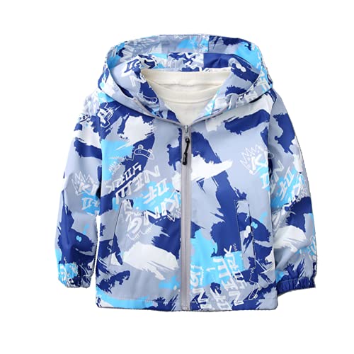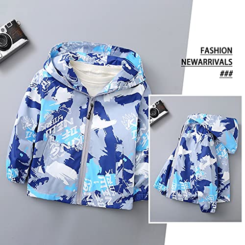 TURMIN Ragazzi Ragazze Impermeabile Stampato, Giacche Antipioggia Impermeabili Per Bambini Poncho Antipioggia Leggero Con Cappuccio Per Bambini 3-7 Anni-Mimetica Blu-130
