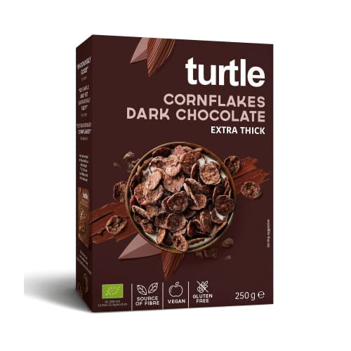 Turtle Cereali Fiocchi di Mais Biologici Senza Glutine Ricoperti di Cioccolato Fondente - 3 x 250 Grammi