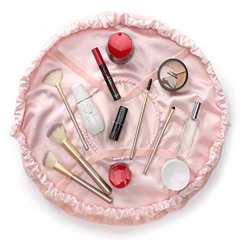 Grande capacità: dimensioni di apertura di 54 * 54 cm, formato pieghevole con 15 * 20 cm, grande abbastanza per contenere tutto il necessario per il trucco, come bottiglie, trucco, spazzole ecc., E pieghevole abbastanza piccolo da contenere il bagaglio a mano. Aiuta con l'imballaggio senza stress!