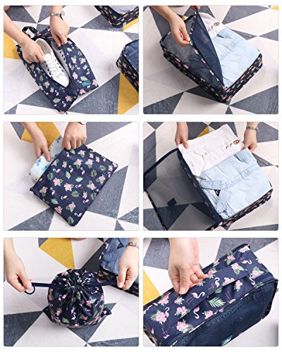 Tuscall Set di 6 Cubo di Viaggio per i bagagli, Organizer Valigia, Cubi da Imballaggio - Perfetto di Viaggio Dei Bagagli Organizzatore (Flamingo)