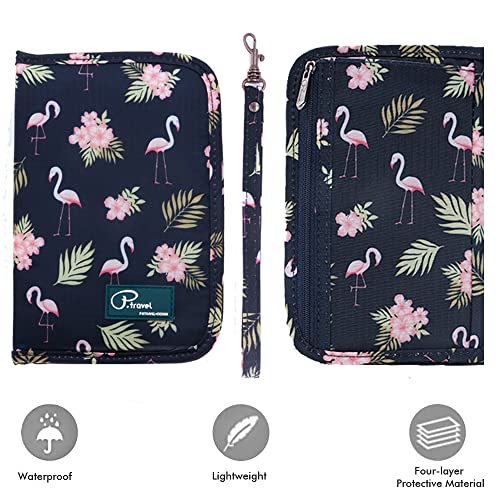 Tuscall Portafoglio Porta Passaporto da Viaggio Donna Porta Patente Documenti Custodie Passaporti Compatto Stampa con Cinturino da Polso per 3 Passaporti, Carta di Vaccinazione, Cellulare