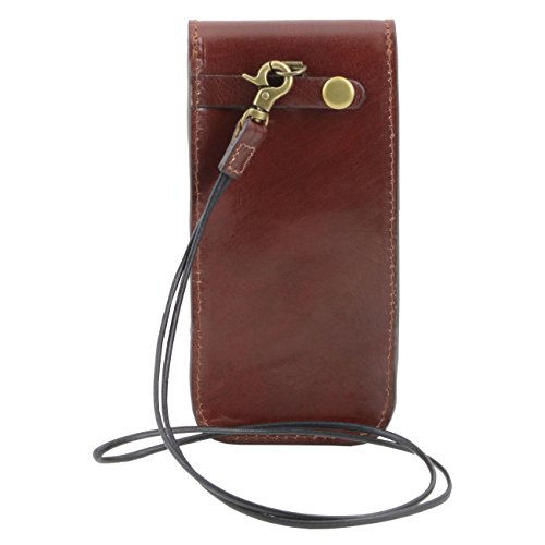 Tuscany Leather Esclusivo portaocchiali/Portacellulare a tracolla in pelle Misura grande Rosso