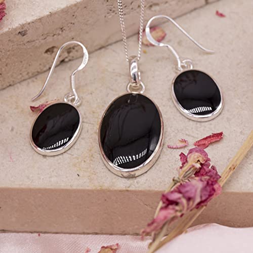 Tuscany Silver Set Collana con Pendente e Orecchini da Donna in Argento Sterling 925, con Onice, 46 cm