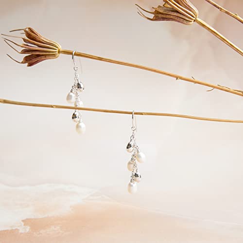 Tuscany Silver Orecchini Pendenti da Donna in Argento Sterling 925, con Perla