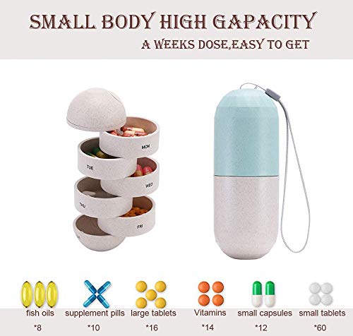TUSNAKE Portapillole Settimanale,Impermeabile, Portatile, a Prova di Umidità, Ideale come Regalo per Uomini e Donne,Dispenser Portatile per Scatola di Pillole (B)