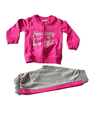 Tuta in felpa di cotone due pezzi neonato neonata - Young stars sportswear (12/18 mesi, Fuxia)