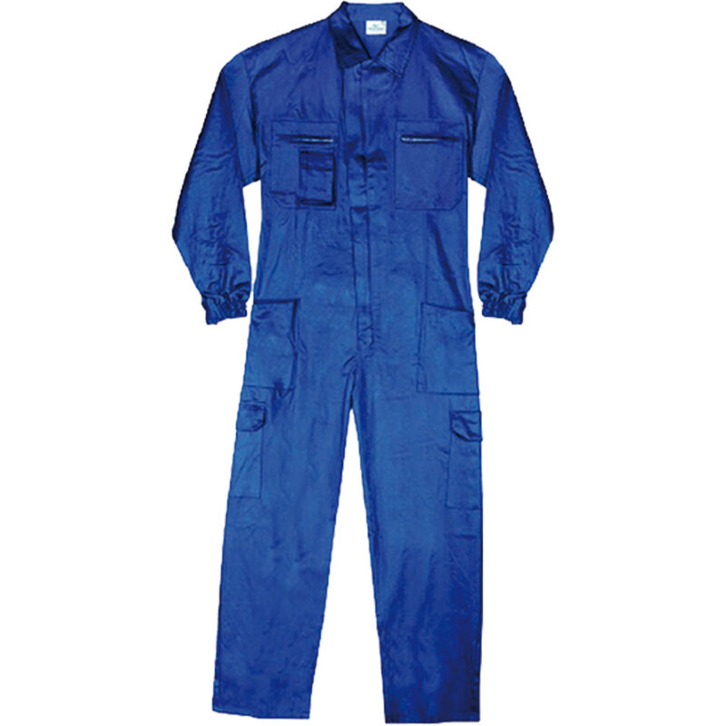 Tuta da lavoro. Tuta da lavoro in cotone con cerniera. Caratteristiche: - Oeko-Tex tuta intera da lavoro realizzata con tessuto 100% cotone sanforizzato. - Percentuale di restringimento +/- 3%. - Dotata di apertura frontale fermata tramite cerniera a doppio cursore metallico ricoperta da patella. - Collo a camicia in tessuto doppio. - Maniche a giro di foggia ampia. - Due tasche applicate sul petto con pattina fermata da bottone. - Due tasche applicate in vita e una tasca posteriore applicata sul lato destro. - Taschino portametro riportato sopra il ginocchio destro. - Idonea per utilizzi generici dove non e' richiesta particolare protezione. - Ideale per magazzinieri, camionisti, manovalanza edile, imprese di pulizia ecc. - Conforme alle norme EN 340 CE Cat 1. - Peso del tessuto: 250 gr/mq. - Colore blu. - Taglia 58.