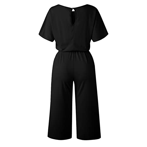 Tuta Lunga Jumpsuit Elegante Abito Cerimonia Donna Maniche Corte a Pipistrello Pantaloni da 7 Punti Elegante Salopette da Donna con Cintura