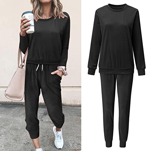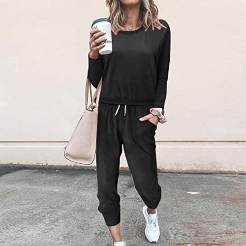 Tuta da jogging da donna in cotone, con maniche lunghe, pantaloni sportivi lunghi con cappuccio, 2 pezzi xs-2xl da donna, a maniche lunghe, elegante e solido, per il tempo libero, per l'autunno, per lo sport, per il jogging, per lo sport, per il tempo libero felpa da do