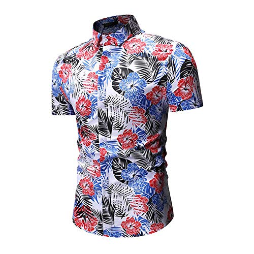 Caratteristiche: camicia tropicale con bottoni per uomo, manica corta, colletto stampato, stile hawaiano, pantaloncini casual da spiaggia con coulisse regolabile, 2 tasche inclinate e 1 tasca posteriore.