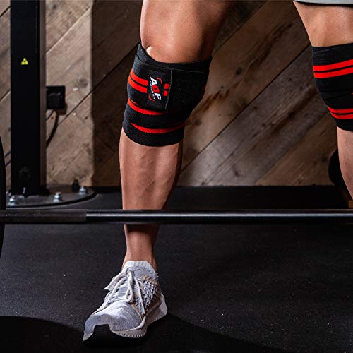 AQF Tutore Ginocchio Bendaggio per Sollevamento Pesi Altamente Resistenti Elasticizzate Ginocchiere Cinghie di Mantenimento Protezione Powerlifting (Nero & Rosso)