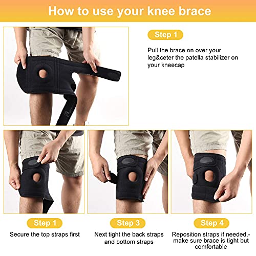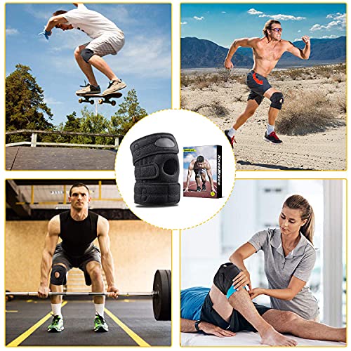 TUTORE GINOCCHIO PROFESSIONALI: Le ginocchiera sono dotate di un design ad anello aperto stabile, guarnizione EVA professionale integrata sulla rotula e quattro molle metalliche accanto per proteggere e sostenere le ginocchia durante l'esercizio. Questa ginocchiera ortopedica può stabilizzare e mantenere allineato l'articolazione, dando un rapido sollievo dal dolore. La protezione è regolabile e offre la massima vestibilità.