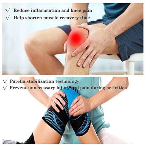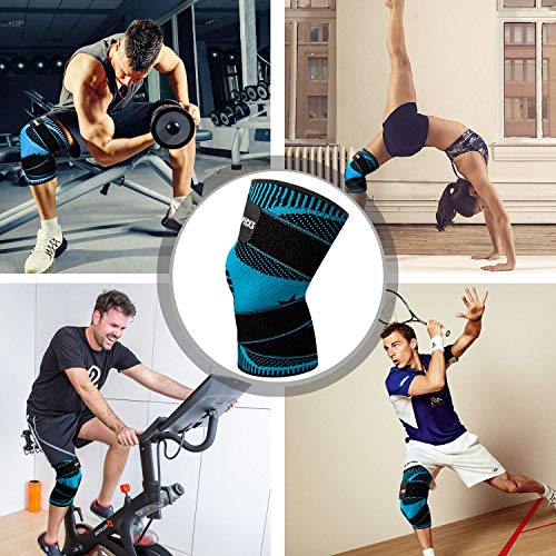 Tutore Ginocchio, Regolabile Ginocchiera Compressione Ginocchio Unisex Fascia Ginocchio Dolore Sollievo E Recupero Da Infortuni Per Supporto Calcio Pallavolo Basket Crossfit, Singolo Blu (L)