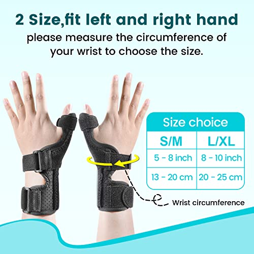 Tutore Pollice, Supporto Stecca per Pollice, Distorsione, Dito a Scatto, Artrite, Tendinite, Sollievo dal Dolore alle Articolazioni del Pollice Causato cellulari o giochi, per Sinistra e Destra -S/M