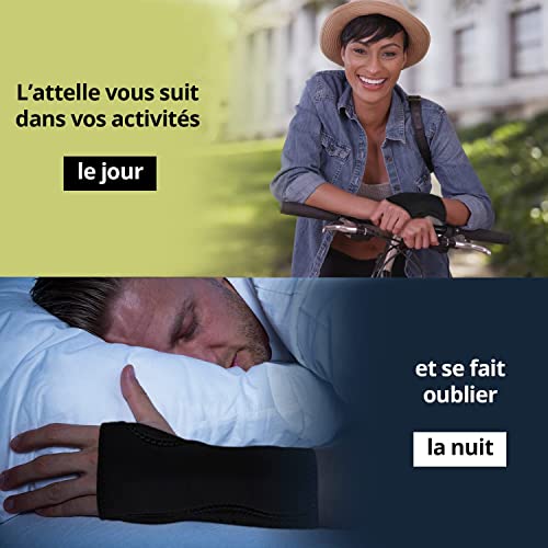 Per polso sinistro o destro, il suo design ergonomico è ideale anche per un uso quotidiano, il tessuto in neoprene nero è leggero e traspirante. In taglia unica, è adatto sia agli uomini che alle donne. In ufficio, l'atella si fa discreta evitando i microtraumi o tendinite dovuti alle ripetute attività sulla tastiera del computer. Facile da installare, si infila come un guanto. È una protezione leggera, regolabile e rimovibile rapidamente.