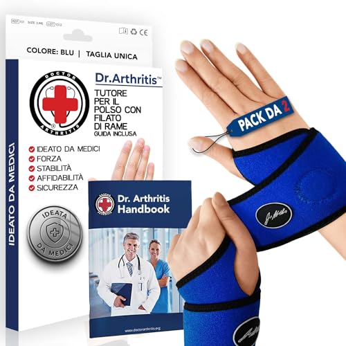 Tutore Polso con Rivestimento in Rame Ideato da Medici - Tutore Polso Sinistro e Destro per Tunnel Carpale - Fascia di Supporto con Chiusura a Strappo (Taglia Unica, Confezione Da Due, Blu)