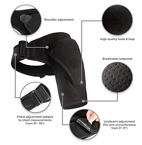 Tutore Spalla, Braccio del Supporto Della Spalla Destra/Sinistra,Supporti per spalle Compatibile con Impacco Caldo/Freddo,Benda Regolabile Supporto della Spalla per Protezione Lesioni Dolore