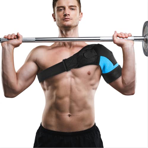 Tutore Spalla per Destra e Sinistra, Benda Regolabile Neoprene Sostegno Spalla per la prevenzione degli infortuni, articolazione AC dislocata, dolore alla spalla congelato, Uomini e Donne, Blu-M