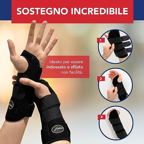 ✅ IDEATO DA MEDICI: A differenza di altre polsiere scomode e che si spostano facilmente, il nostro tutore polso sinistro, progettato da Medici Specialisti, unisce efficaci chiusure a strappo e una stecca in metallo per sostenere e tenere fermo il polso in posizione neutra.