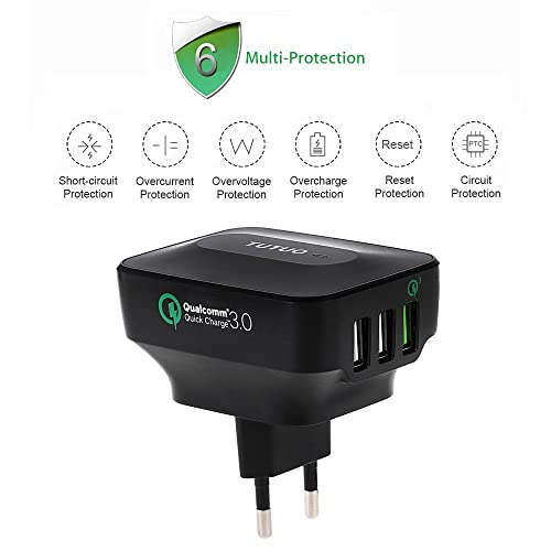 TUTUO Caricabatterie USB da Muro a 3 Porte Multiplo 25W Quick Charge 3.0 Caricatore Veloce Alimentatore per iPhone 13/Pro, Galaxy S22, Huawei, Pixel, iPad Pro/Air/mini, Nexus 6P, Note 5 e Altri