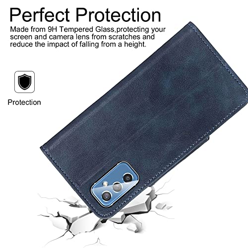 TUTUO [1+ 2 Pezzi Cover + Camera Pellicola Protettiva Compatibile con Samsung Galaxy M52 5G, Flip Portafoglio Custodia in Pelle con TPU Cover [Carta Slot], Anti Graffio HD Vetro Temperato - Bleu