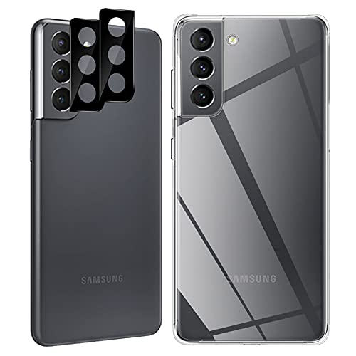 TUTUO [1+ 2 Pezzi Cover + Pellicola Fotocamera Protezione Compatibile con Samsung Galaxy S21 FE 5G, Trasparente Non Ingiallente, Antiurto Morbida TPU Case, HD Anti Graffio Pellicola Protettiva