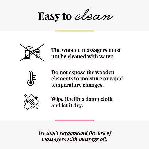 Il massaggiatore in legno non deve essere pulito con acqua. Pulire con uno spray disinfettante a base d'acqua, pulire con un panno pulito e lasciare asciugare.