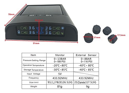 Tuvva sistema di monitoraggio della pressione delle gomme TPMS wireless, a energia solare con 4 sensori esterni