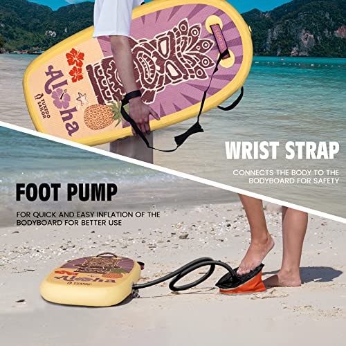 【Facile da gonfiare e sgonfiare】 Il bodyboard con valvola di sicurezza è durevole e a prova di perdite. La tavola da surf è facile da trasportare dopo il gonfiaggio. Il gonfiaggio della tavola richiede solo un minuto.