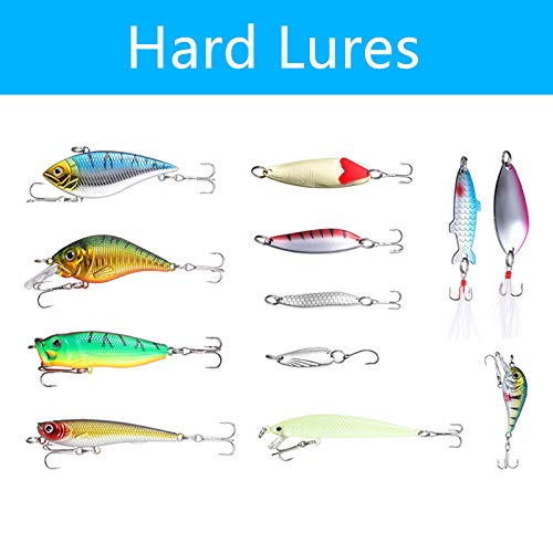 101 accessori: include diversi tipi di esche come esche dure, esche morbide, esche da pesca in acqua dolce e altri accessori, perfette per oceano, lago, fiume, serbatoio, stagno e ruscello.
