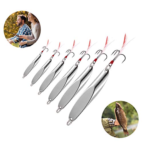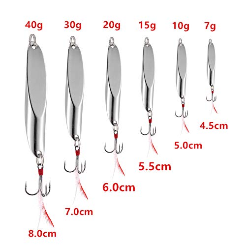 TUXIBIN TXB6-1 - Set di 6 esche da pesca, 7 g, 10 g, 15 g, 20 g, 30 g, 40 g, in metallo, esche da pesca con cucchiaio, esche da pesca Spinnerbait per salmone, trote, esche con ami tripli