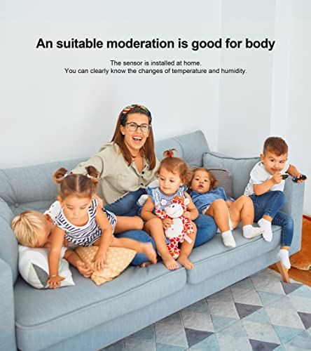 Collegamento intelligente: il sensore di temperatura e umidità può essere collegato con altri dispositivi intelligenti in casa per migliorare il riscaldamento e il raffreddamento dell'interno e rendere la vostra casa più confortevole. Design a basso vantaggio per garantire una durata della batteria a lungo termine.