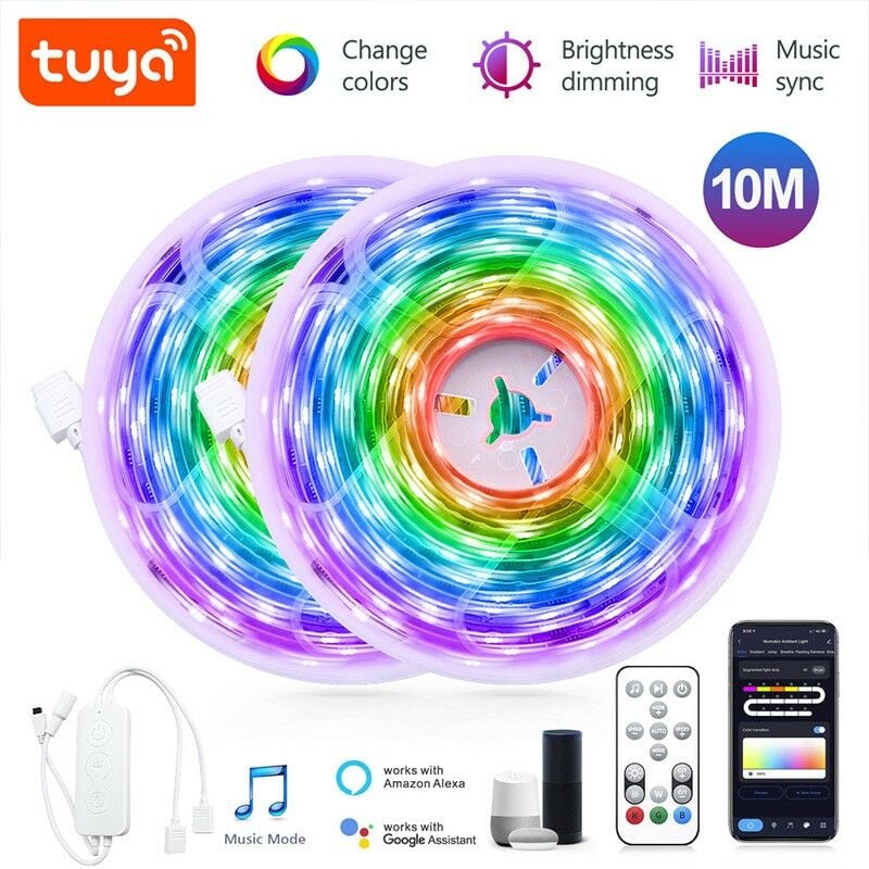 Tuya Smart WiFi Kit Striscia Led Superiore RGBIC Dream Color con Telecomando IR Guarda i colori che si rincorrono o scorrono costantemente come un arcobaleno . Dì addio alla noiosa illuminazione a tinta unita RGB. L' illuminazione è la prima scelta nella creazione di una casa Smart ed oltre le semplici lampadine esistono anche altre soluzioni come le strisce luminose intelligenti, che non sono solo un accessori o comune nel campo gamer per creare un'atmosfera di giochi di colori soft. Versione RGBIC che è costruita con l'ultima tecnologia di visualizzazione della luce infatti dispone di un chip avanzato IC (controllo indipendente) che rende i colori multipli che mostrano su una striscia di luce simultaneamente. Questo eccezionale chip permette un controllo indipendente del modulo LED e visualizzazione di più colori su una linea, ossia di poter scegliere di impostare diversi segmenti della striscia su colori diversi, regolare la luminosità e altro. Effetto arcobaleno RGB Con