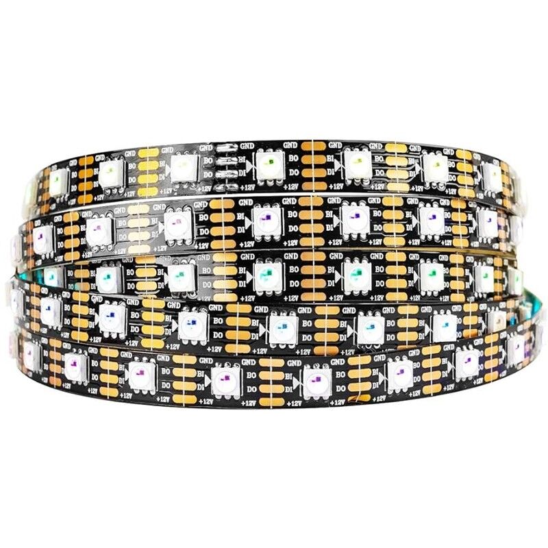Striscia LED Digitale WS2815 RGBIC Professionale con 60 LED al Metro DC12V 5 Metri Trasforma la tua casa in un'esperienza visiva mozzafiato con la Striscia LED Digitale WS2815 Indirizzabile. Con 60 pixel ad alta luminosità per metro, questa striscia LED dinamica è una soluzione all'avanguardia per illuminazione personalizzata e creativa. La striscia LED RGB smart (IC) è progettata per funzionare con una tensione di 12 V CC. Ogni chip LED è dotato di una propria sorgente luminosa SMD5050 e di un driver integrato (IC), che consente il controllo individuale di ciascun LED della striscia. In questo modo può essere programmata per creare modelli di luce complessi ed effetti di animazione personalizzati. Inoltre, può essere allungata e tagliata ogni 16 mm, il che le conferisce una grande versatilità. Grazie al suo design intelligente, il chip di backup garantisce la continuità del segnale anche in caso di rottura di un pixel, assicurando un'esperienza di illuminazione senza interruzioni.
