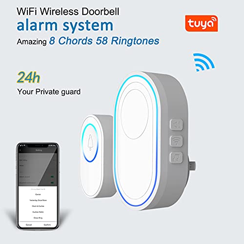 [WiFi FAI DA TE di Sicurezza Domestica Campanello di Allarme]: La Migliore idea per la vostra vita, fino a quando la rete Wi-Fi è abbastanza ampio, si può costruire una potente protezione e sistema di allarme. Piccolo campanello grande uso, vero e proprio FAI DA TE. Tuya APP in grado di gestire più WiFi campanelli.